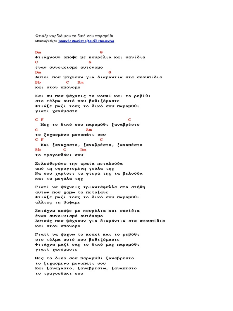 Ftia3e Kardia Moy To Diko Soy Paramy8i Lyrics By Dionyshs Tsaknhs Ftiaxnoyn Apopse Me Koyrelia